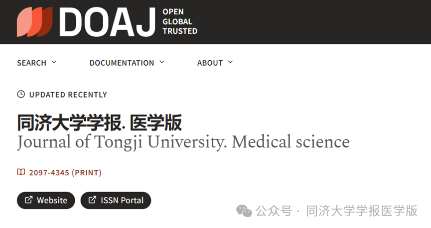 2024年10月25日,《同济大学学报(医学版)》正式被全球最具影响力的开放存取期刊目录DOAJ(Directory of Open Access Journal)收录。